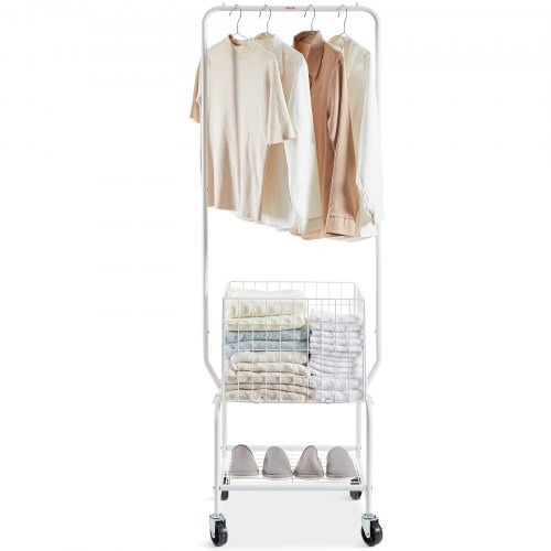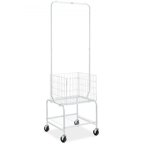 VEVOR Carrello Portabiancheria con 4 Ruote Appendiabiti Cesto della Lavanderia Portabiancheria con Stendibiancheria Carico Complessivo 52 kg Regolabile in Altezza con Carico Cestino e Carico Ripiano