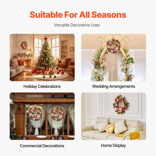 VEVOR Ghirlanda Decorativa Artificiale, 60,96 cm, Rosso Arancione Giallo, Decorata con Ortensie, Rose, Cartello in Legno, Ghirlanda Tutto l'Anno, Decorazione Interni Esterni, Pareti di Casa, Finestre