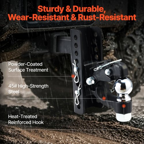 VEVOR Gancio di Traino Regolabile, Attacco a Sfera da 20 cm, Adatto per Ricevitore 5 cm, Gancio di Traino per Rimorchio con Sfere 50/58,7 mm, 9750 kg GTW, Perno Antifurto, Attacco a Sfera Solido