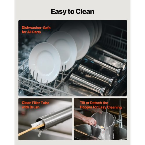 VEVOR Insaccatrice Manuale per Salsicce 2,5 L Macchina per Salsiccia Orizzontale con Morsetto a U, Realizzata in Acciaio Inossidabile per Alimenti, Include 8 Tubi di Ripieno, per Cucina, Ristorante