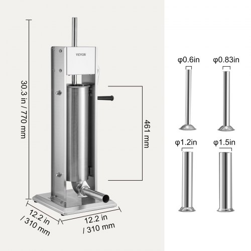 VEVOR Insaccatrice Manuale Verticale per Salsiccia in Acciaio Inossidabile 3Litri, Macchina per Insaccare Salsicce in Modo Manuale Capienza da 3L in Acciaio Inossidabile 4 Tubi di Riempimento Inclusi