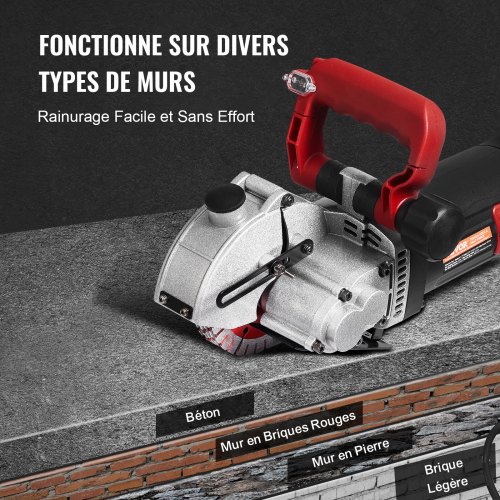 VEVOR Taglierina per scanalature a muro Profondità scanalatura 34 mm Taglierina per scanalature a muro 4800 W 220 V Taglierina elettrica per scanalature a muro Max. 5 pezzi Lame