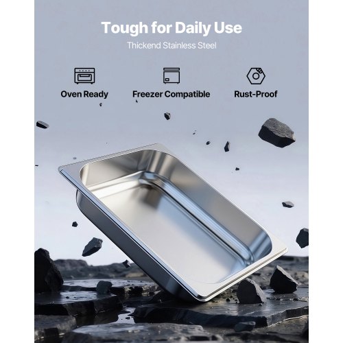 VEVOR 1/2 Pentola per Vapore in Acciaio Inox, 64 mm di Profondità, Pentola a Tavolo da 15,2 L, Forniture per Ristoranti Anti-Inceppamento, Antiruggine, per la Casa, Feste, Ristoranti, 4 Confezioni