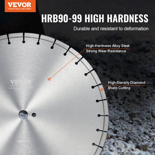 VEVOR Lama per troncatrice diamantata per calcestruzzo da 45 cm per lavori a secco o a umido, Lama per troncatrice a segmenti diamantati da 12 mm con denti obliqui, diametro del foro centrale 25,4 mm,