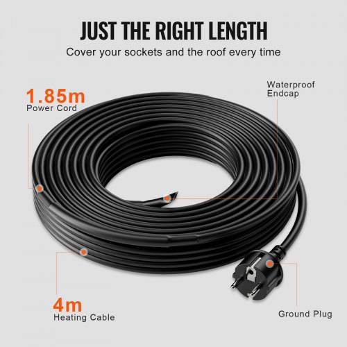 VEVOR Cavo Riscaldante per Tubi Lunghezza da 4 m 23 W/m per Tubi con Termostato Integrato, Cavo Riscaldante per Tubi dell'Acqua Protezione Tubi in PVC, Tubi in Metallo e Plastica dal Congelamento