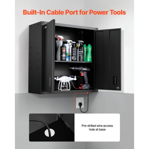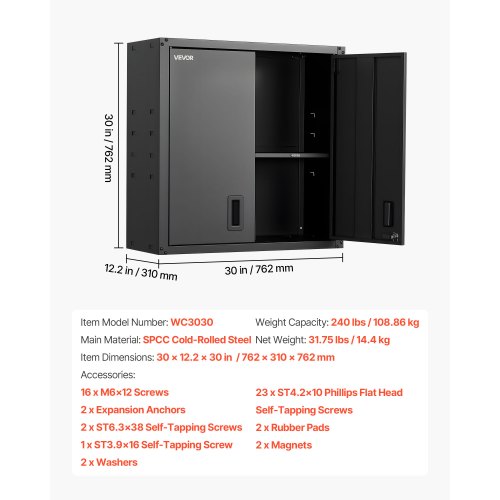VEVOR Mobiletto da Parete in Metallo, 762 x 310 x 762 mm, Mobiletto Sospeso in Acciaio con Ante con Serratura e Ripiano Regolabile per Garage, Cantina, Cucina, Montaggio Richiesto, Nero