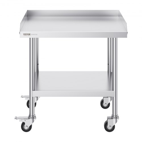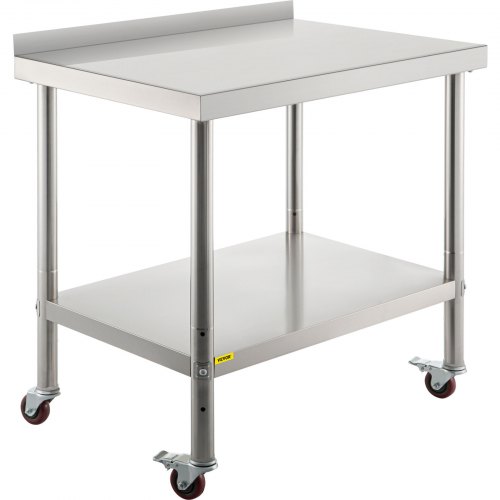 VEVOR Tavolo da Lavoro in Acciaio Inossidabile 762 x 914 x 660 mm Tavolo da Lavoro Commerciale per Preparazione degli Alimenti con Alzatina su 3 Lati, con Altezza Regolabile per Casa Ristorante Hotel