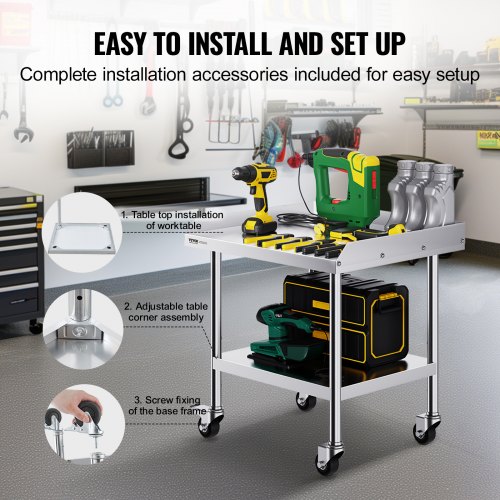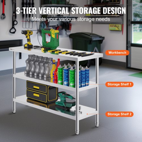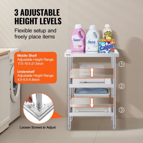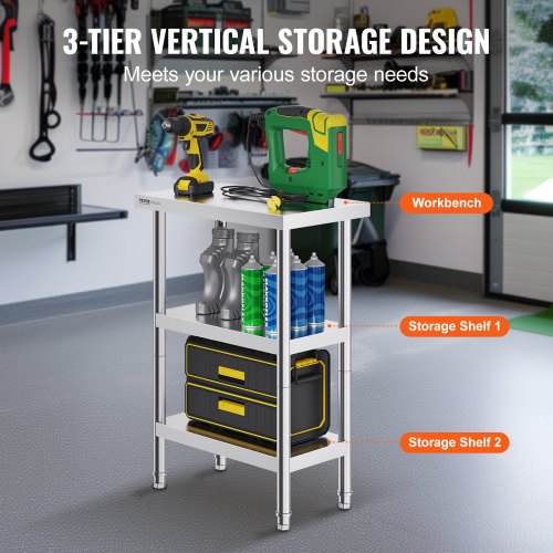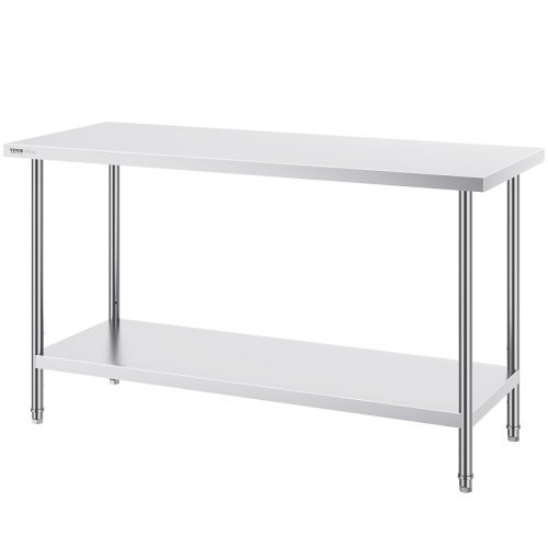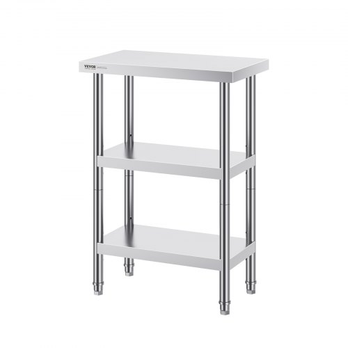 VEVOR Tavolo da Lavoro in Acciaio Inossidabile 610 x 610 x 914 mm Tavolo da Lavoro Commerciale per Preparazione degli Alimenti, Tavolo da Lavoro in Metallo con Altezza Regolabile per Ristorante, Casa