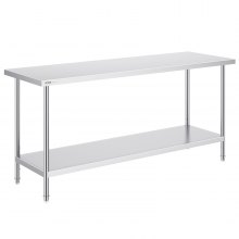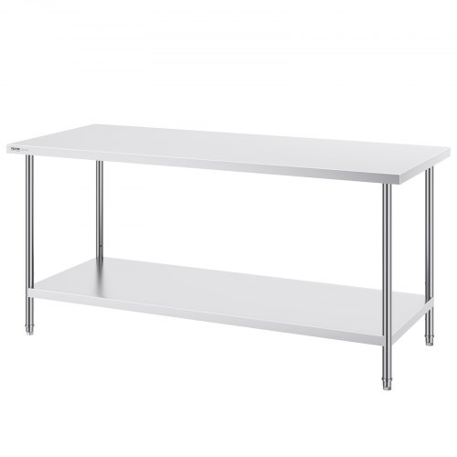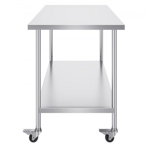 VEVOR Tavolo da Lavoro in Acciaio Inossidabile 762 x 1829 x 864 mm, con 4 Ruote, 3 Livelli di Altezza Regolabili, Tavolo Resistente per Preparazione Alimenti Ristoranti Cucina Commerciale, Argento