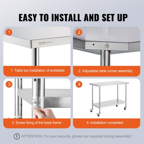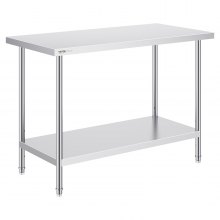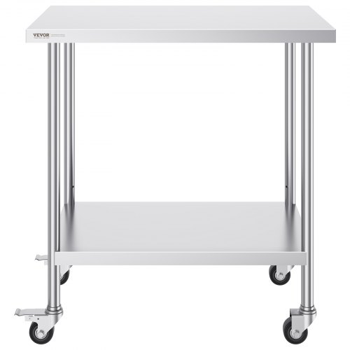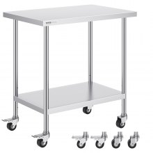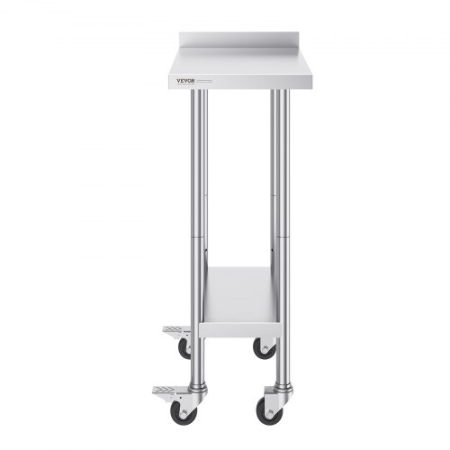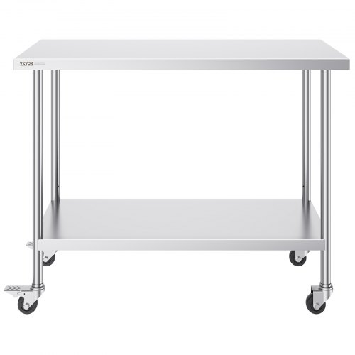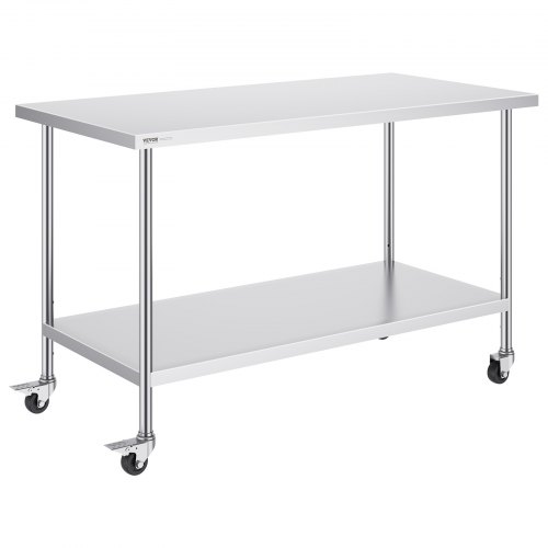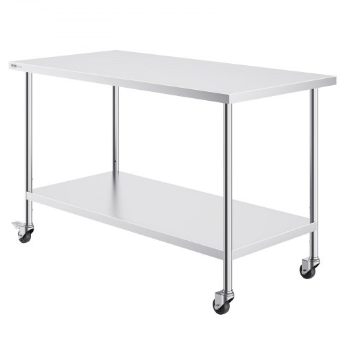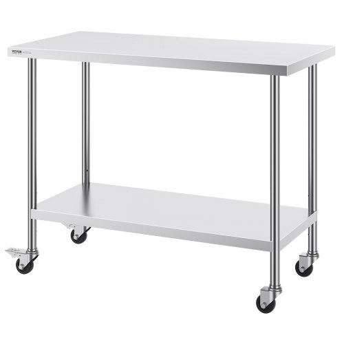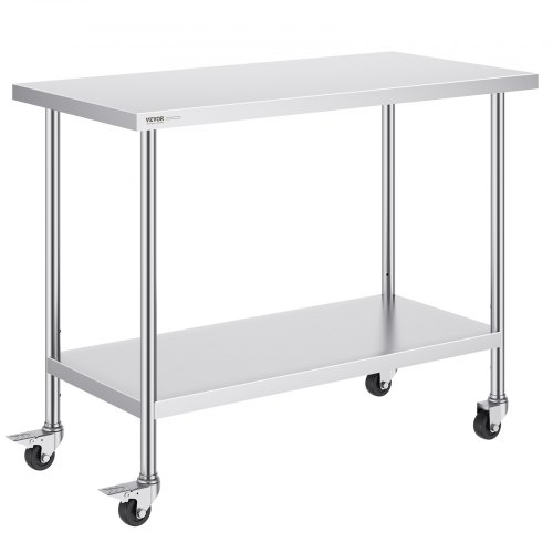 VEVOR Tavolo da Lavoro in Acciaio Inossidabile 610 x 1219x 1005 mm Tavolo Commerciale Preparazione Alimenti Ruote, Tavolo da Lavoro Carichi Pesanti, Tavolo Altezza Regolabile Ristorante Casa Hotel