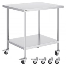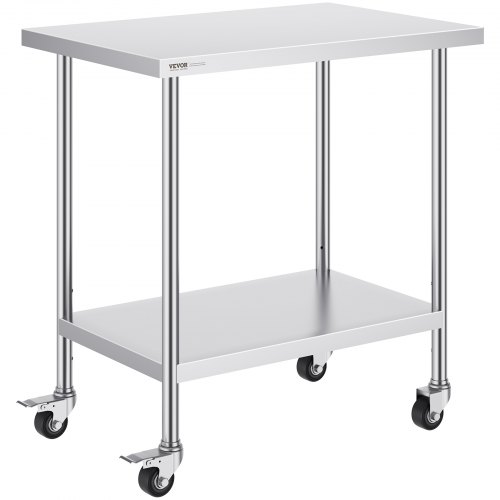 VEVOR Tavolo di Lavoro per Cucina Commerciale in Acciaio Inox Ripiano Doppio con Ruote 90 x 76 x 82 cm, Piano di Lavoro per Cucina Uso Commerciale in Acciaio Inox Capacità Carico Totale160kg 2 Piani