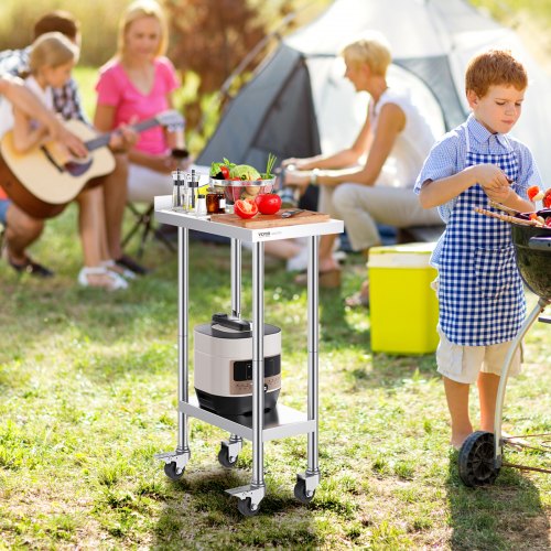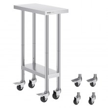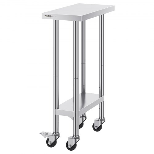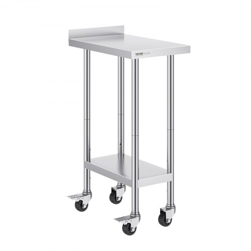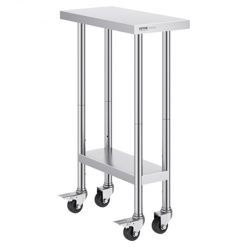 VEVOR Tavolo di Preparazione in Acciaio Inox, 24 x 15 x 35 Pollici, Capacità di Carico di 440 libbre, Stazione di Lavoro Commerciale per Cucina Ristorante, Tavolo da Cucina a Rotelle