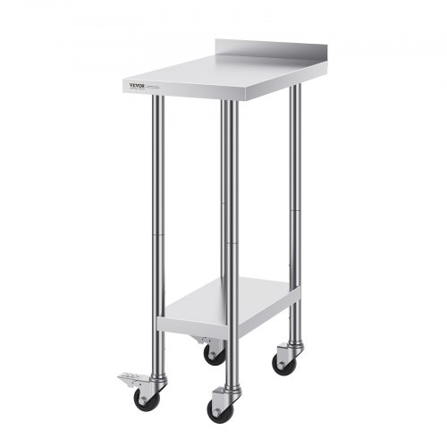 VEVOR Tavolo da Lavoro in Acciaio Inossidabile 610 x 381 x 1005 mm, con 4 Ruote, 3 Livelli di Altezza Regolabili, Tavolo Resistente per Preparazione Alimenti Ristoranti Cucina Commerciale, Argento