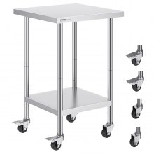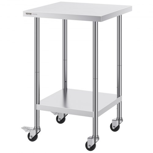 VEVOR Tavolo da Lavoro in Acciaio Inossidabile 610 x 762 x 914 mm, con 4 Ruote, 3 Livelli di Altezza Regolabili, Tavolo Resistente per Preparazione Alimenti Ristoranti Cucina Commerciale, Argento