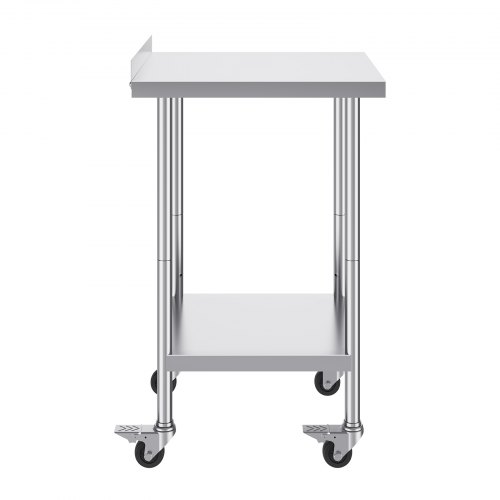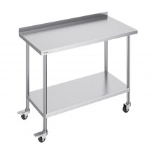 VEVOR Tavolo da Lavoro per Cucina di Preparazione Alimenti in Acciaio Inox 4 Ruote Alzatina 5cm, Piano da Lavoro Ripiano Doppio 91,4 x 61 x 89 cm con Ruote e Alzatina Capacità Carico 200kg in Totale