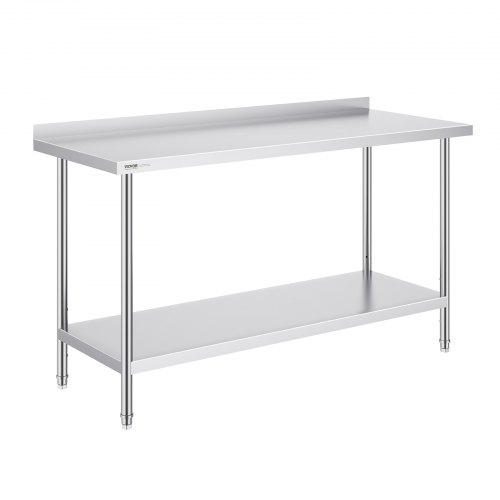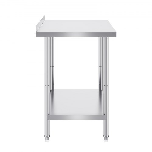 VEVOR Tavolo da Lavoro in Acciaio Inossidabile 762 x 1219 x 660 mm Tavolo da Lavoro Commerciale per Preparazione degli Alimenti con Alzatina su 3 Lati, con Altezza Regolabile per Casa Ristorante Hotel