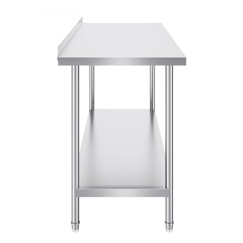VEVOR Tavolo da Lavoro in Acciaio Inossidabile 762 x 1524 x 660 mm Tavolo da Lavoro Commerciale per Preparazione degli Alimenti con Alzatina su 3 Lati, con Altezza Regolabile per Casa Ristorante Hotel