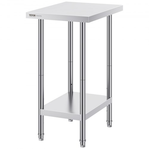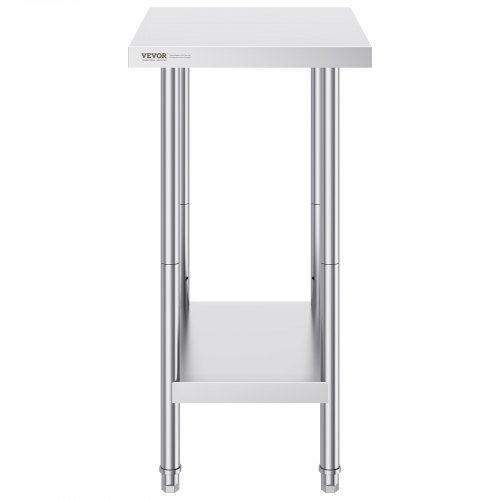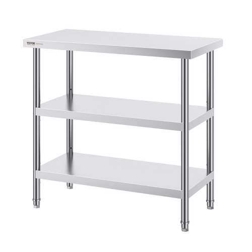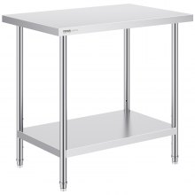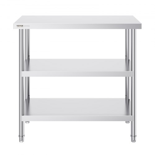 VEVOR Tavolo da Lavoro in Acciaio Inox 76 x 76 x 91 cm, Tavolo di Preparazione 2 Ripiani Portata max. 362 kg, Tavolo da Cucina Commerciale Altezza Ripiani Regolabile per Ristorante Bar Garage Esterno