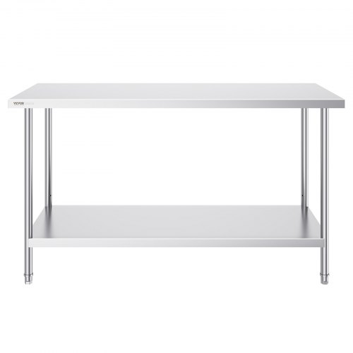VEVOR 60 x 60 x 80cm Piano Lavoro per Cucina Commerciale in Acciaio Inox, Tavolo di Lavoro da Cucina 2 Piani Altezza Regolabile, Tavolo da Lavoro per Cucina Professionale in Acciaio Inox con 4 Gambe