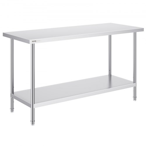 VEVOR Piano di Lavoro da Cucina Commerciale in Acciaio Inox 60 x 60 x 80 cm, Tavolo Cucina per Preparazione di Alimenti Uso Commerciale in Acciaio Inox Capacità da 150kg, Tavolo di Lavoro in Cucina