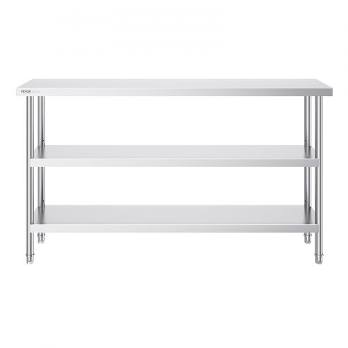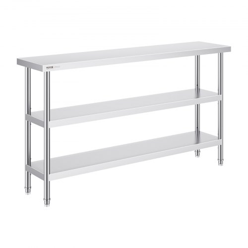 VEVOR Tavolo da Lavoro in Acciaio Inossidabile 610 x 1524 x 864 mm, con 4 Ruote, 3 Livelli di Altezza Regolabili, Tavolo Resistente per Preparazione Alimenti Ristoranti Cucina Commerciale, Argento