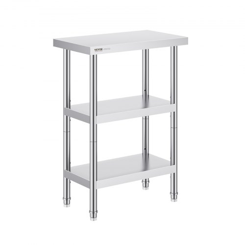 VEVOR Tavolo da Lavoro in Acciaio Inossidabile 610 x 914 x 954,6 mm Tavolo da Lavoro per Preparazione Alimenti Resistente con 4 Ruote, 3 Livelli di Altezza Regolabili, per Ristoranti Cucina, Argento