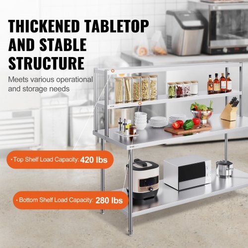 VEVOR Supporto per griglia per attrezzature in acciaio inox, 60 x 30 x 24 pollici, Tavolo per griglia, Tavolo per griglia per supporto per attrezzature per hotel, casa, cucina del ristorante