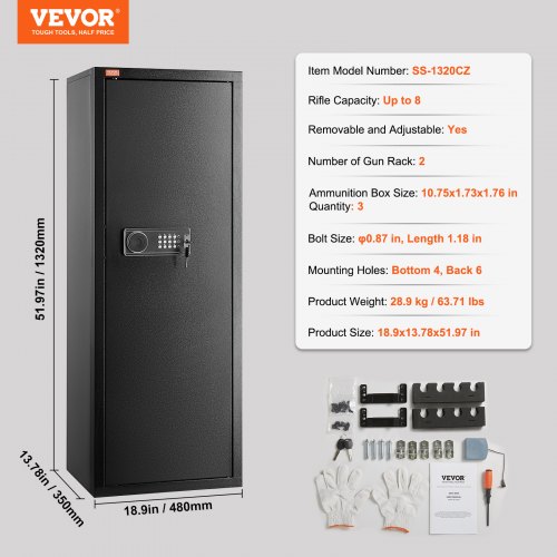 VEVOR Cassaforte per Fucili, Cassaforte per 6-8 Fucili con Serratura e Tastiera Digitale, Mobiletto Alto per Fucili ad Accesso Rapido con Ripiano Rimovibile, Cassaforte Mobiletto per Fucili da Caccia