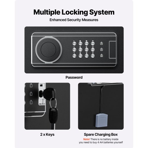 VEVOR Cassaforte a Muro con 2 Chiavi con Impronta Digitale e Cassaforte con Combinazione Elettronica 4 x AA a Batteria Sicure per La Sicurezza Domestica