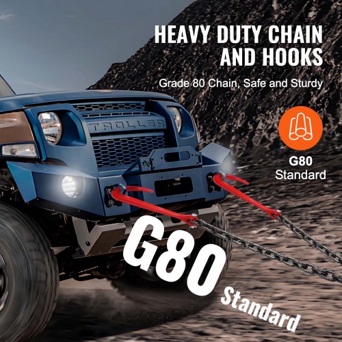 VEVOR Catena di Traino G80 con Gancio di Presa φ7,93 mm x 61 m, Catena di Trasporto, Capacità di Carico 2222 kg, Acciaio al Manganese con Rivestimento Zincato per Cantieri di Fabbriche 2 pezzi