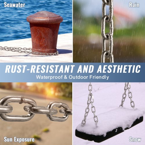 VEVOR Catena a maglie in acciaio al carbonio zincato, 3,5 mm x 10,05 m, Capacità carico 158 kg, Due connettori rapidi, Catena per traino, Sospensione, Campeggio, Catena traino di sicurezza da auto