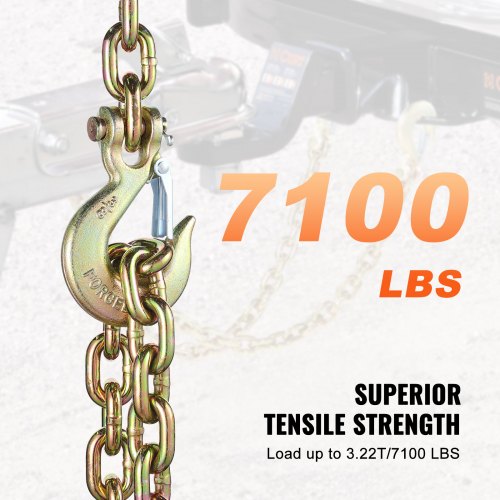VEVOR Catena a maglie da traino con ganci a forcella, catena di trasporto G80 8 mm x 433 cm, capacità di carico della catena per tronchi 2,22 t, per il fissaggio di attrezzature per carro attrezzi