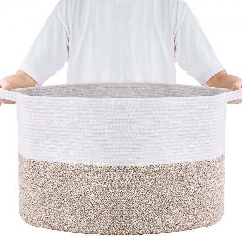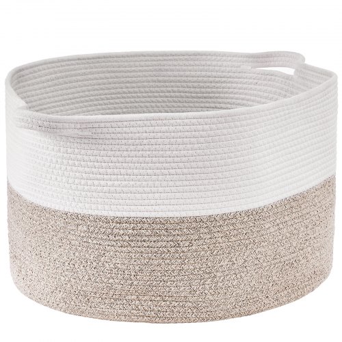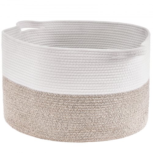 VEVOR Cesto per Coperte, 87L, Cesto in Corda di Cotone con Manici, Cesto per Biancheria Rotondo 558 x 558 x 355 mm, Cestini Portaoggetti Pieghevoli per Organizzare Vestiti, Giocattoli, Cuscini