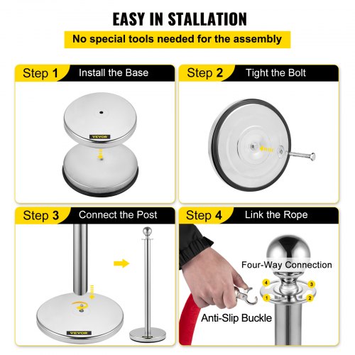 VEVOR Paletto di Sostegno, Set di 8, Barriere di Controllo della Folla con 4 Corde di Velluto Rosso, Palo di Sostegno in Acciaio Inox Argentato da 1,5 m con Base Cava per Festa, Matrimonio, Mostra