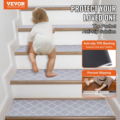 VEVOR Set di Tappeti per Scale Interne Antiscivolo 15 Pz 71,2 x 22,8 cm Lavabili in Lavatrice, Coprigradini per Scale Insonorizzanti Tappeti Antiscivolo di Sicurezza per Uso Domestico Grigio Chiaro