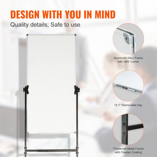 VEVOR Lavagna Magnetica Bianca Lato Doppio per Scrittura Area 57,3 x 118,3 cm con Ruote per Ufficio Aula, Lavagna Bianca Magnetica Cancellabile a Secco 4 Rotelle Scorrevoli Altezza Angolo Regolabile
