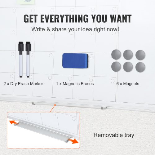 VEVOR Lavagna Magnetica Bianca da Parete Area Scrittura 87,6 x 57,1 cm con Calendario Agenda per Ufficio Aula Casa, Lavagna Bianca Magnetica Murale Cancellabile a Secco con Calendario Agenda Mensile