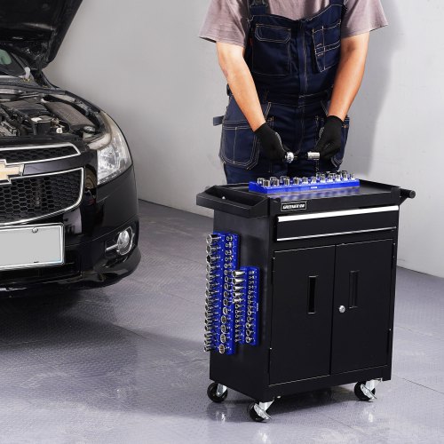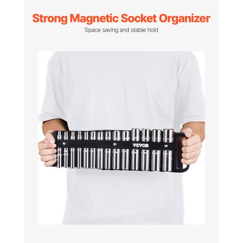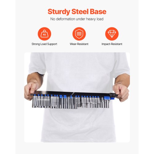 VEVOR Vassoio Porta-Bussole Portatile, 2 Set per Porta-Bussole Metrico SAE 1/4 3/8 1/2 Pollici Maniglia e Base in Acciaio per Cassetto della Cassetta degli Attrezzi, Contiene Fino a 160 Bussole