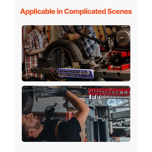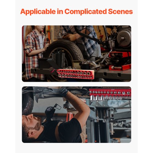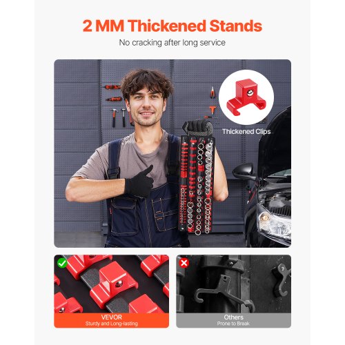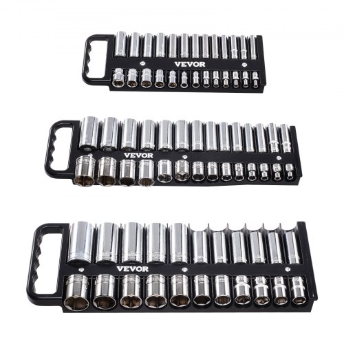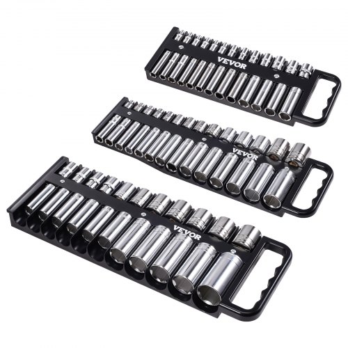 VEVOR Set di Guide per Organizzatori di Prese, 3 PZ Organizzatori di Prese in Alluminio Metrico SAE 1/4 3/8 1/2 Pollici, Supporto per Prese per Impieghi Gravosi Contiene Fino 40 Prese, Rosso Nero