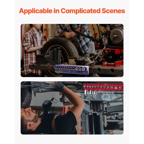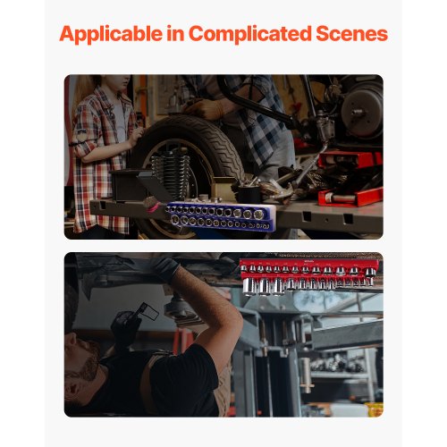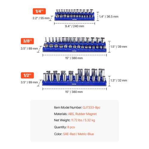 VEVOR Set di Organizzatore per Prese Magnetiche, 8 Porta Prese, Vassoi per Prese SAE Metriche 1/4 3/8 1/2 Pollici Contengono Fino a 199 Prese Standard e Profonde, Blu e Rosso (Prese Non Incluse)
