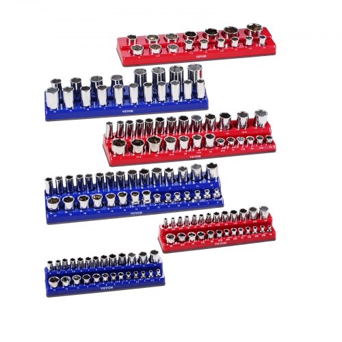 VEVOR Set di Organizzatore per Prese Magnetiche, 6 Porta Prese, Vassoi per Prese SAE Metriche 1/4 3/8 1/2 Pollici Contengono Fino a 143 Prese Standard e Profonde, Blu e Rosso (Prese Non Incluse)