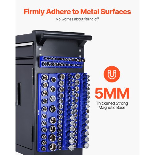 VEVOR Set di Organizzatore per Prese Magnetiche, 3 Supporti Magnetici per Prese, Vassoi per Prese Metriche 1/4 3/8 1/2 Pollici Contengono Fino 75 Prese Standard e Profonde, Blu, Prese Non Incluse