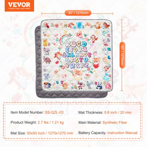VEVOR Tappetino da Gioco per Bambini 1270 x 1270 x 20 mm Tappetino per Gattonare Antiscivolo in Un Pezzo Morbido Ispessito, Tappeto Gioco per Attività Impermeabili per Neonati, Lavabile in Lavatrice