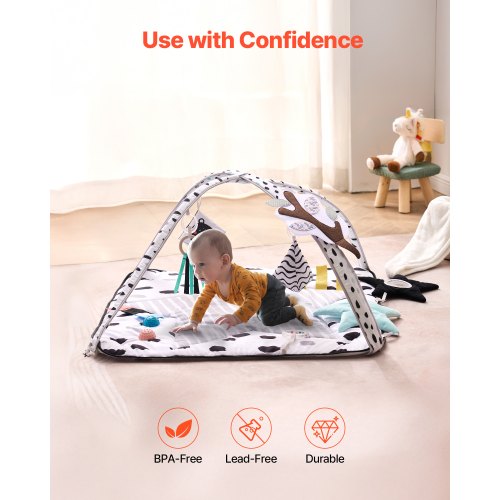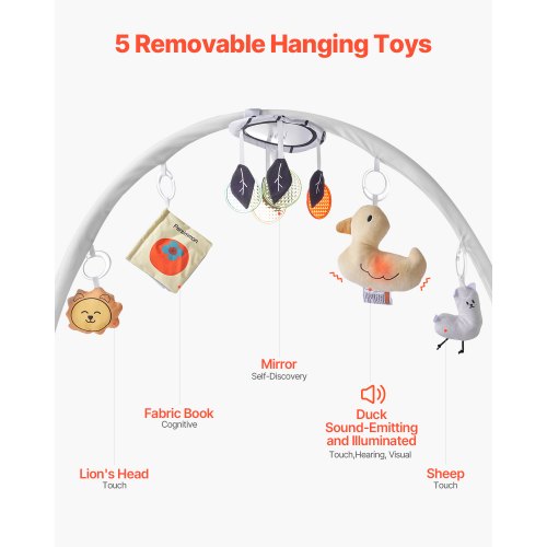 VEVOR Tappetino da Gioco per Bambini, Tappetino per il Tempo sulla Pancia con 5 Giocattoli Sensoriali Staccabili, 995 x 830 mm, Tappetino Pieghevoli con Giocattolo Musicale Luminoso