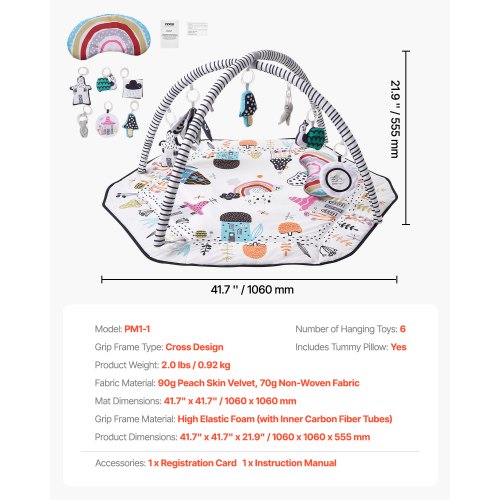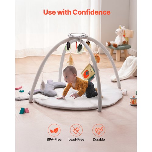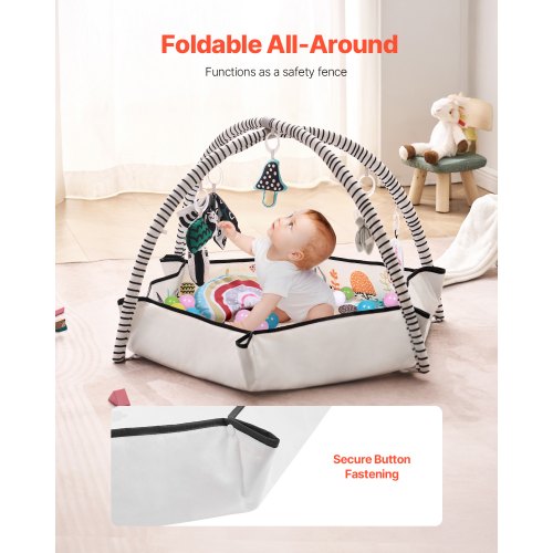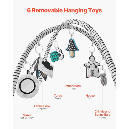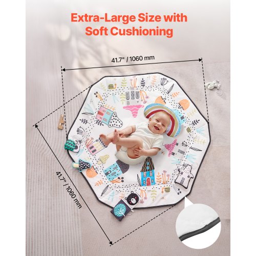 VEVOR Tappetino da Gioco per Bambini, Tappetino per il Tempo sulla Pancia con 6 Giocattoli Sensoriali Staccabili, 1060 x 1060 mm, Tappetino Pieghevoli per Attività per Neonati Giocattoli