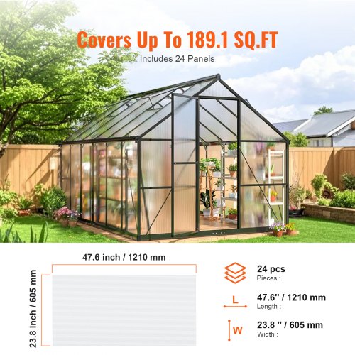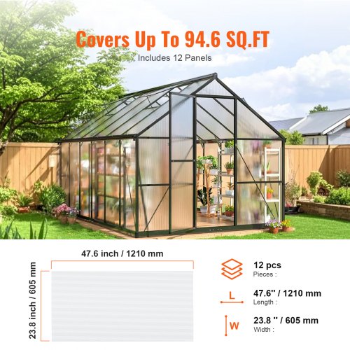 VEVOR Pannelli per Serre in Policarbonato per Tetti 14 Pezzi, 1210 x 605 x 8 mm, Coperture in Plastica Ondulata Impermeabile e Protetta dai Raggi UV, Lastre Trasparenti per Coperture Urti per Serre