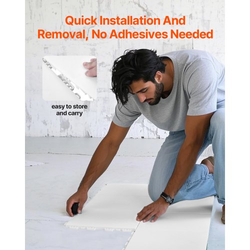 VEVOR Tappetini da Hockey ad Incastro 315 x 315 x 16 mm Tappetini da Palestra, 8 Pezzi, Piastrelle per Pista da Ballo per Superficie di Allenamento Versatile ad Incastro, Grigio Bianco 0,74 m²/Scatola