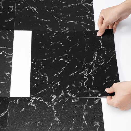 VEVOR Piastrelle per Pavimenti in Vinile Autoadesive 305 x 305 mm 50 Piastrelle Spesse 1,5 mm in Vinile Effetto Marmo Nero per Sala da Pranzo, Camere da Letto e Bagni, Facile per Decorare la Casa