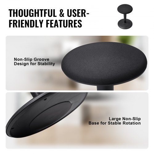 VEVOR Sedia Attiva, Sedia Regolabile in Altezza (55-72 cm) Sgabello Flessibile in Ferro che Migliora Concentrazione e Postura, Ideale per Scuole, Ufficio, Casa, Angolo di Inclinazione di 8° Nero