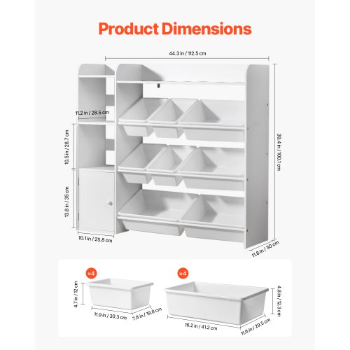 VEVOR Scaffale per Giocattoli, Carico di 10 kg Organizzatore per Giocattoli a 4 Ripiani con 8 Contenitori in Plastica Flessibili, Mobiletto per Camera da Letto, Aula, Cameretta dei Bambini, Bianco
